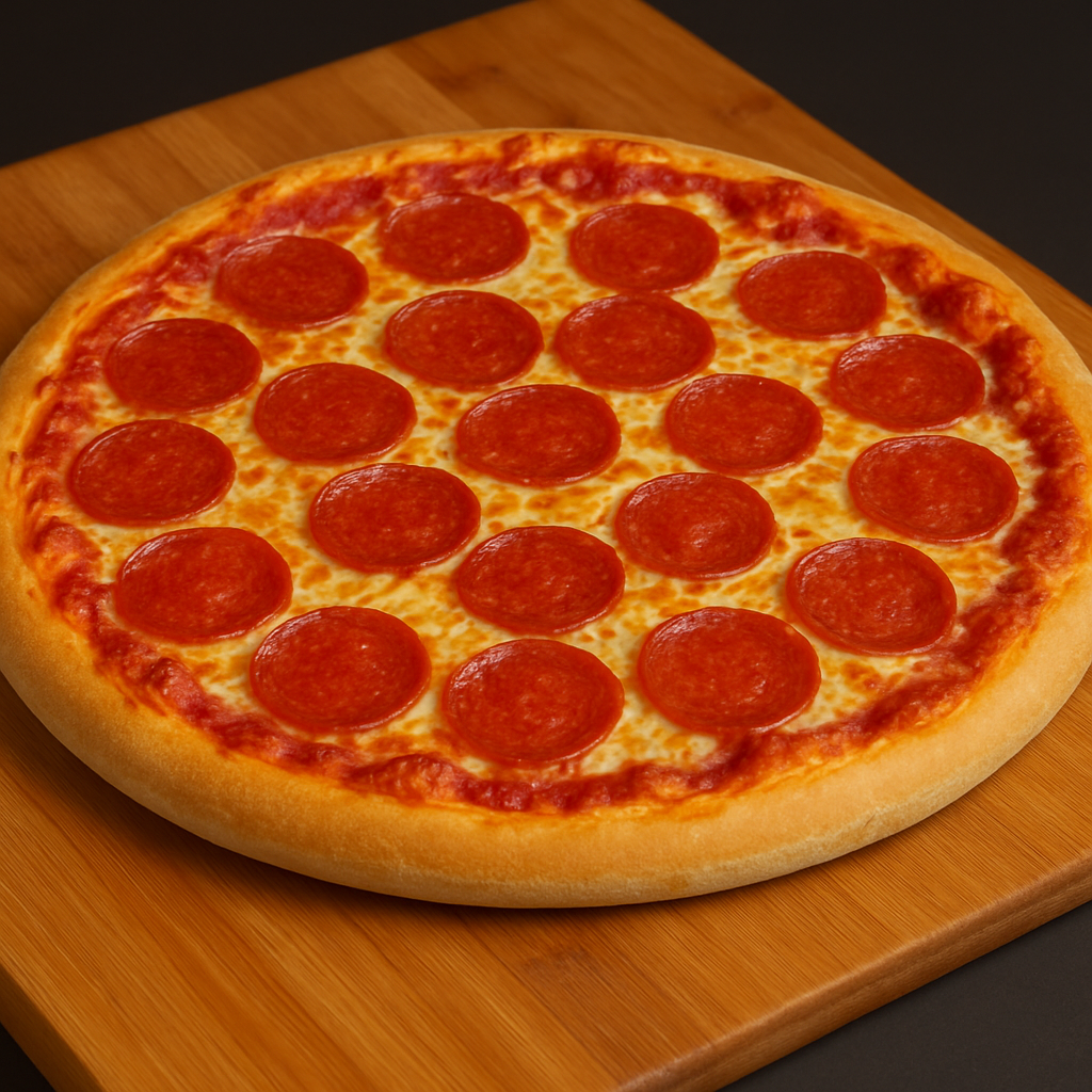 Pepperoni Pizza - $14.00 A classic pepperoni pizza topped with crispy, savory pepperoni slices over melted mozzarella and tangy tomato sauce—all on a perfectly golden, chewy crust.