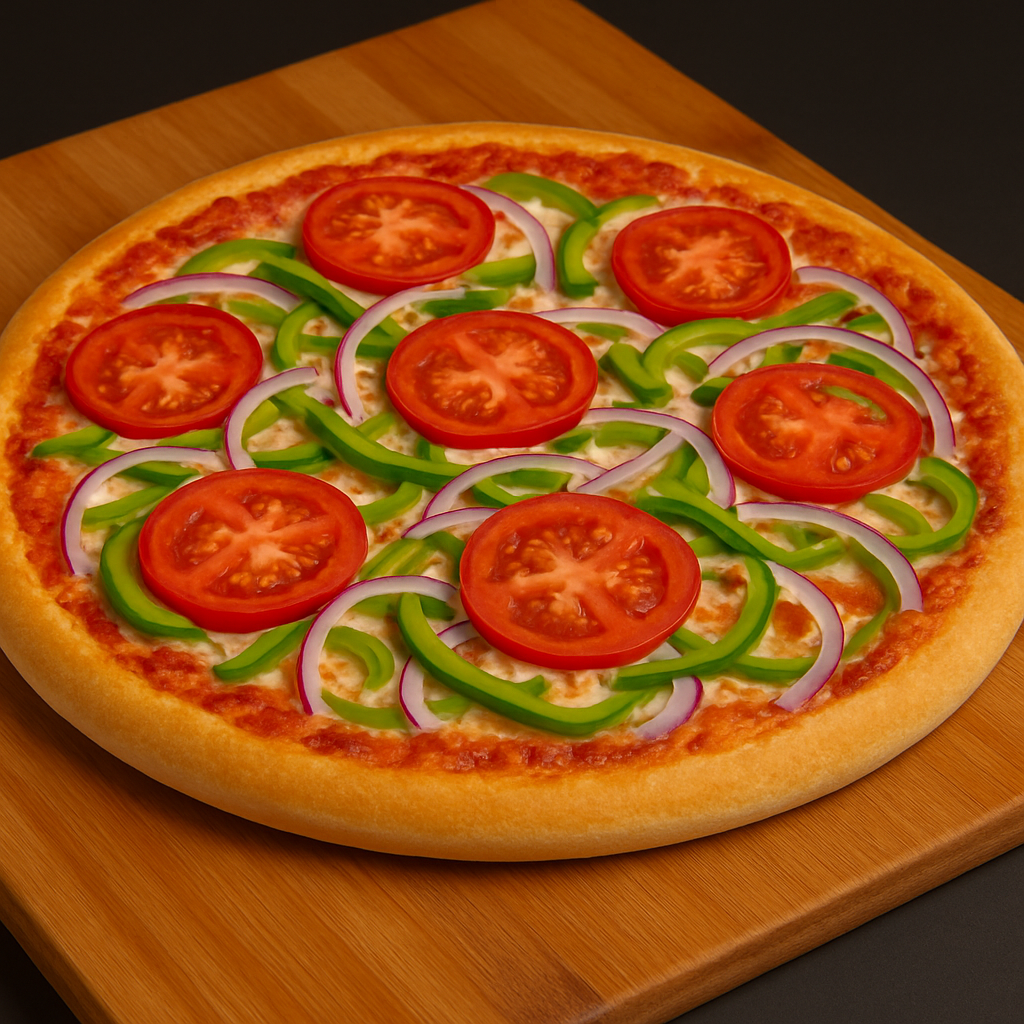 Fresh Veggie Pizza - $18.00 A fresh veggie pizza topped with sliced tomatoes, green peppers, and red onions over bubbly mozzarella and tangy tomato sauce—all on a golden, hand-tossed crust.