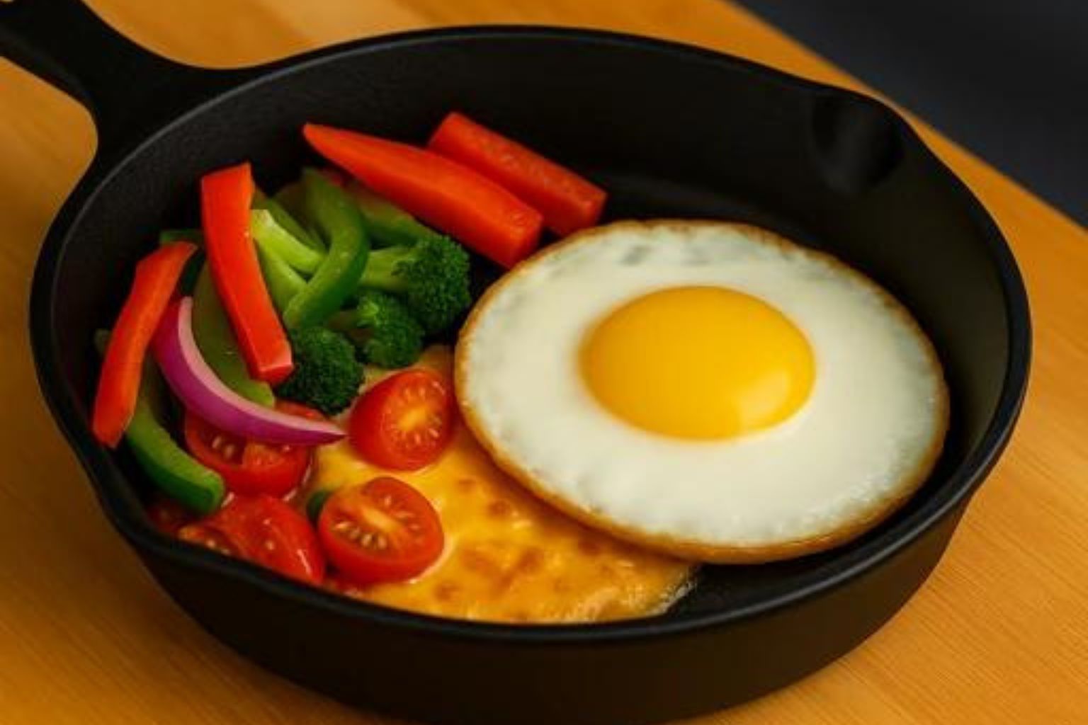 Egg, tomato, spinach, onions, and peppers