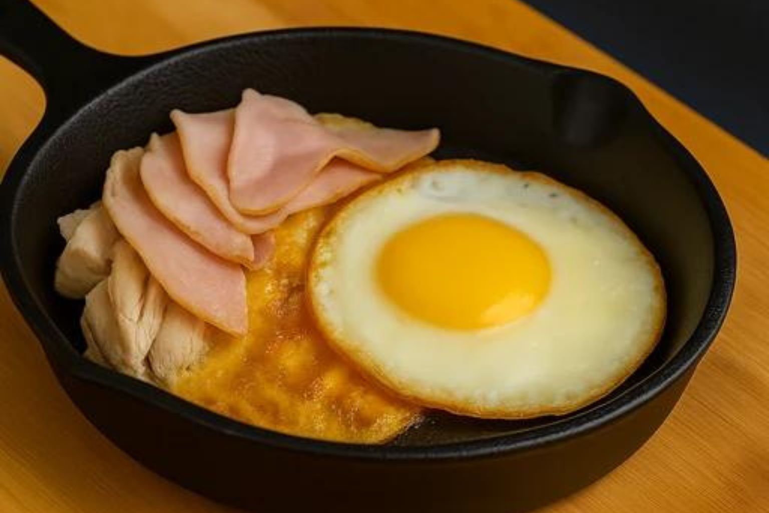 Savory ham layered with eggs and cheddar