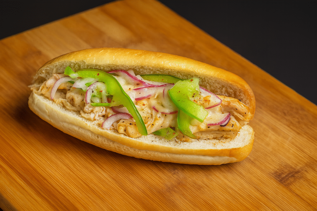 Medium Subs – $12.00 | Large Subs – $14.00 A savory chicken sub loaded with tender grilled chicken, melted cheese, crisp green peppers, and zesty red onions all nestled in a soft, fresh sub roll for a flavorful, satisfying bite.