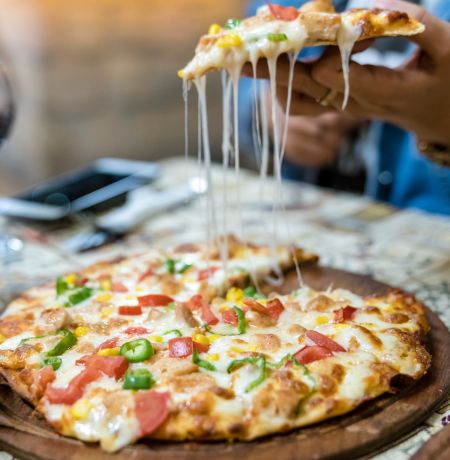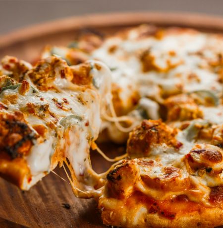Our personal pizzas start with a crispy crust, zesty tomato sauce, and melty mozzarella cheese. You take it from there with any toppings you like.